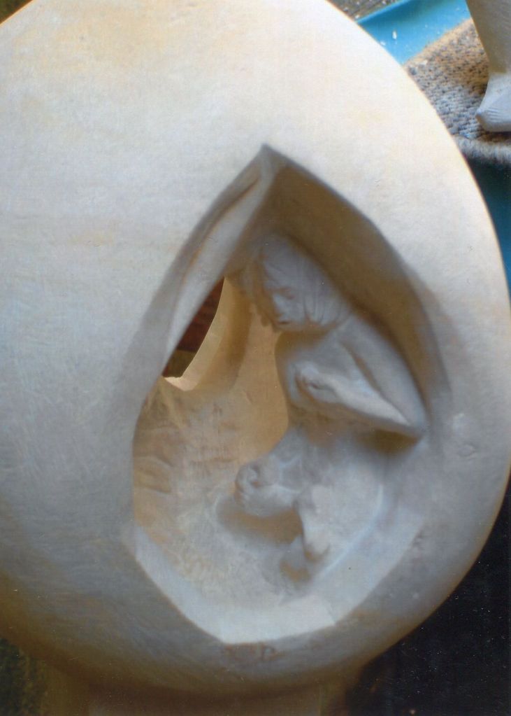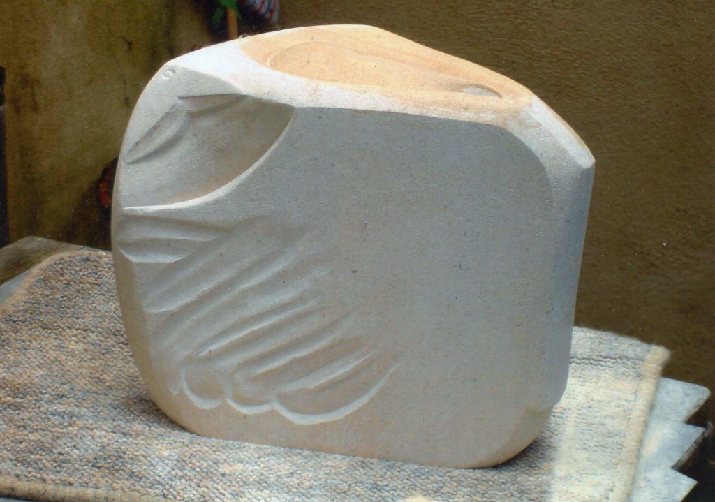‘Totem Bird – Child’, Ancaster stone, at studio