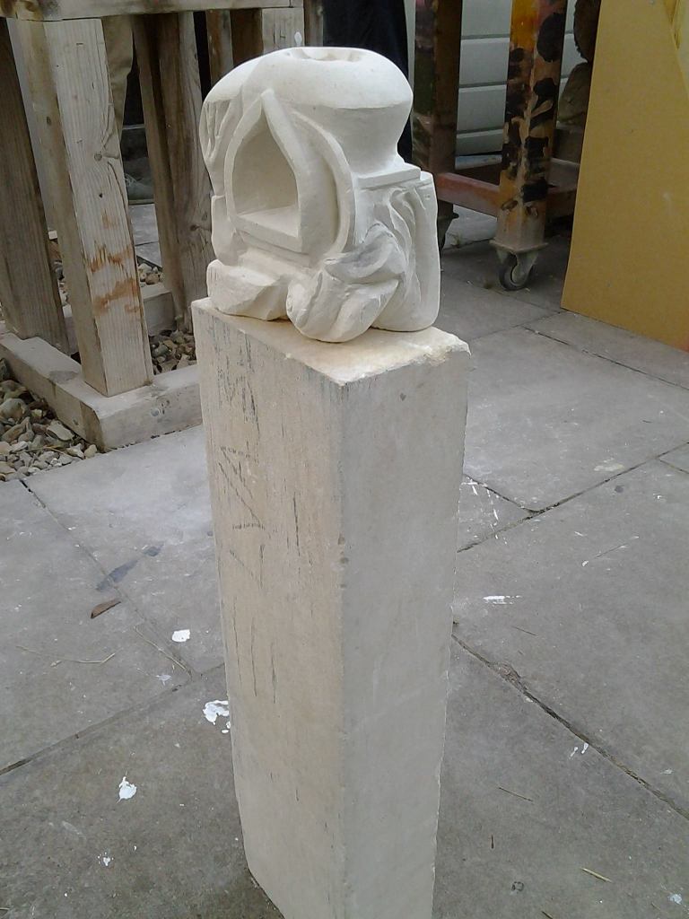 ‘Temple’ – Lepine stone, at studio – trying out on stone plinth